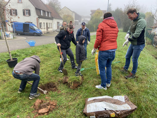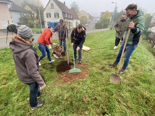 Fraktion und Vorstand helfen tatkräftig bei Baumpflanzung mit