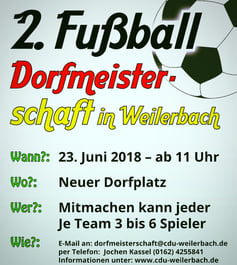 Am Samstag, den 23.Juni veranstaltete der CDU Ortsverband Weilerbach die 2.Fußball-Dorfmeisterschaften im Street-Soccer auf dem neuen Dorfplatz.